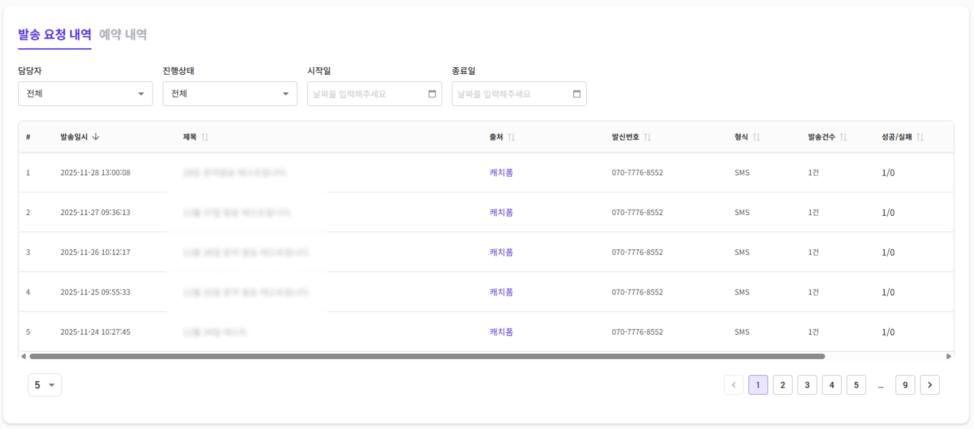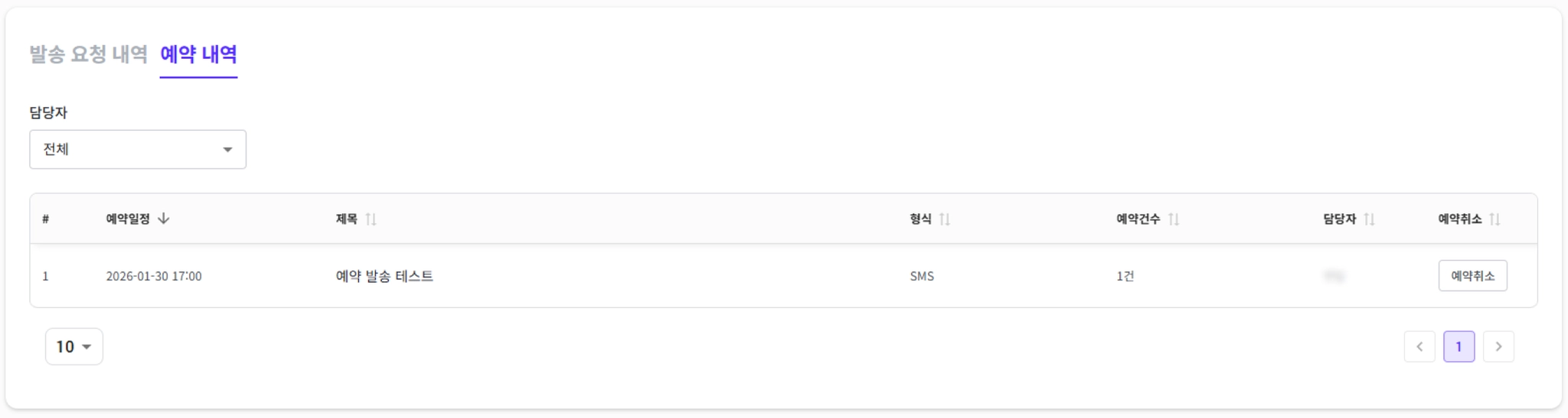 예약 문자 발송 내역을 리스트로 확인할 수 있습니다.