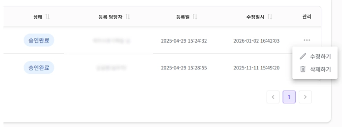 발신 메일 목록에서 관리(…)를 클릭 후, 삭제하기를 선택하면 해당 발신 주소를 삭제할 수 있습니다.