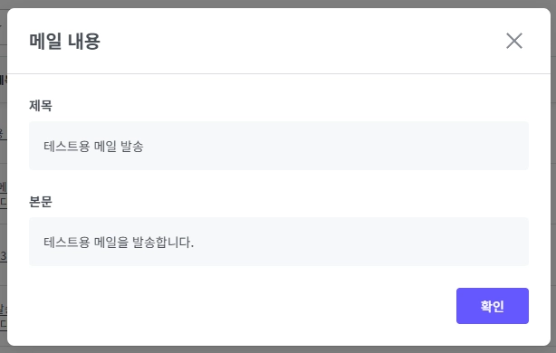 요청 내역 목록에서 ‘제목’을 클릭하면 발송 당시 메일 내용을 다시 확인할 수 있습니다.