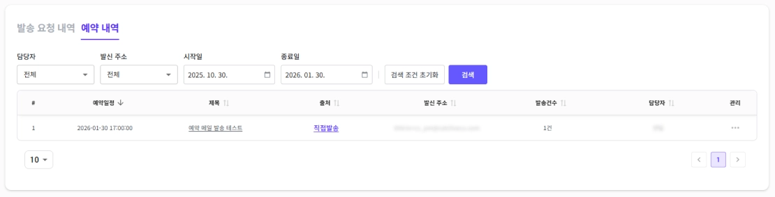 예약 발송한 메일 리스트를 확인합니다.