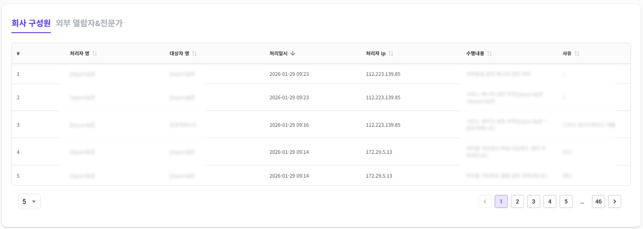 위치: 좌측 메뉴 > 개인정보 모니터링 > 권한 처리로그