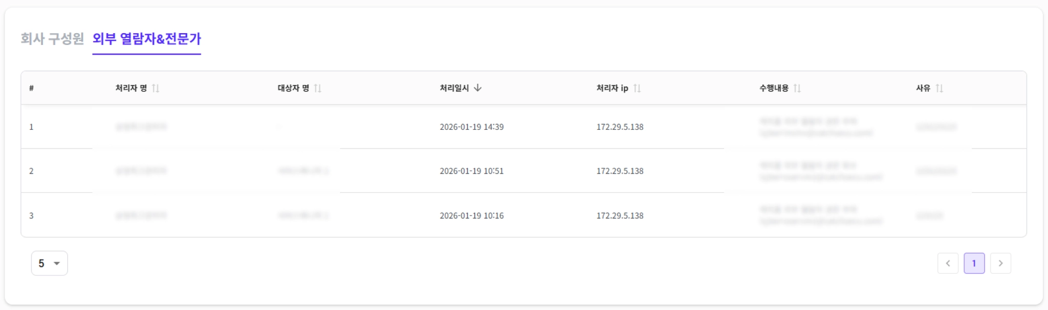 회사 내부 구성원이 아닌 외부 권한자 변동을 확인할 수 있습니다.