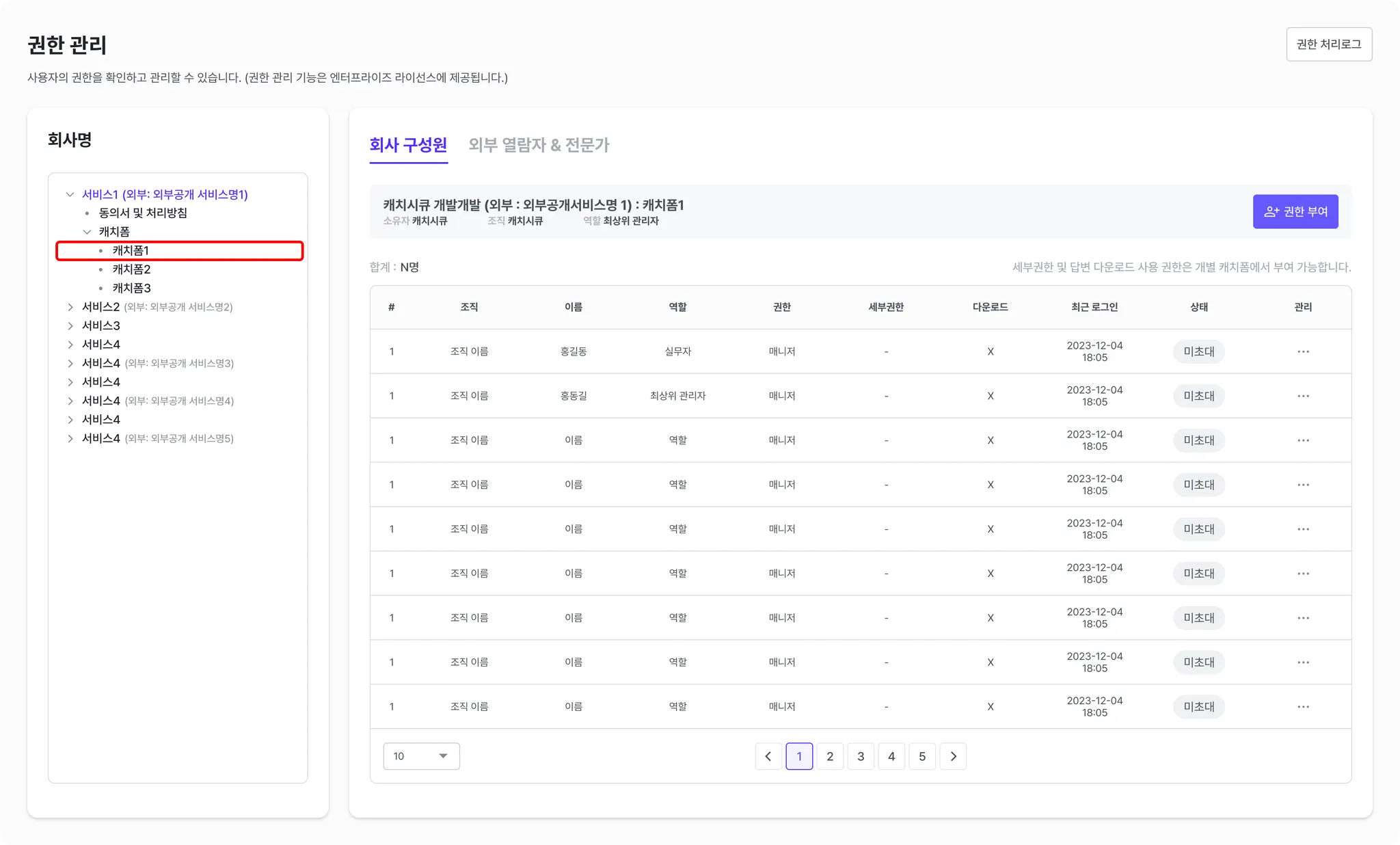 캐치폼별 권한 관리 기능은 엔터프라이즈 라이선스에 제공됩니다.