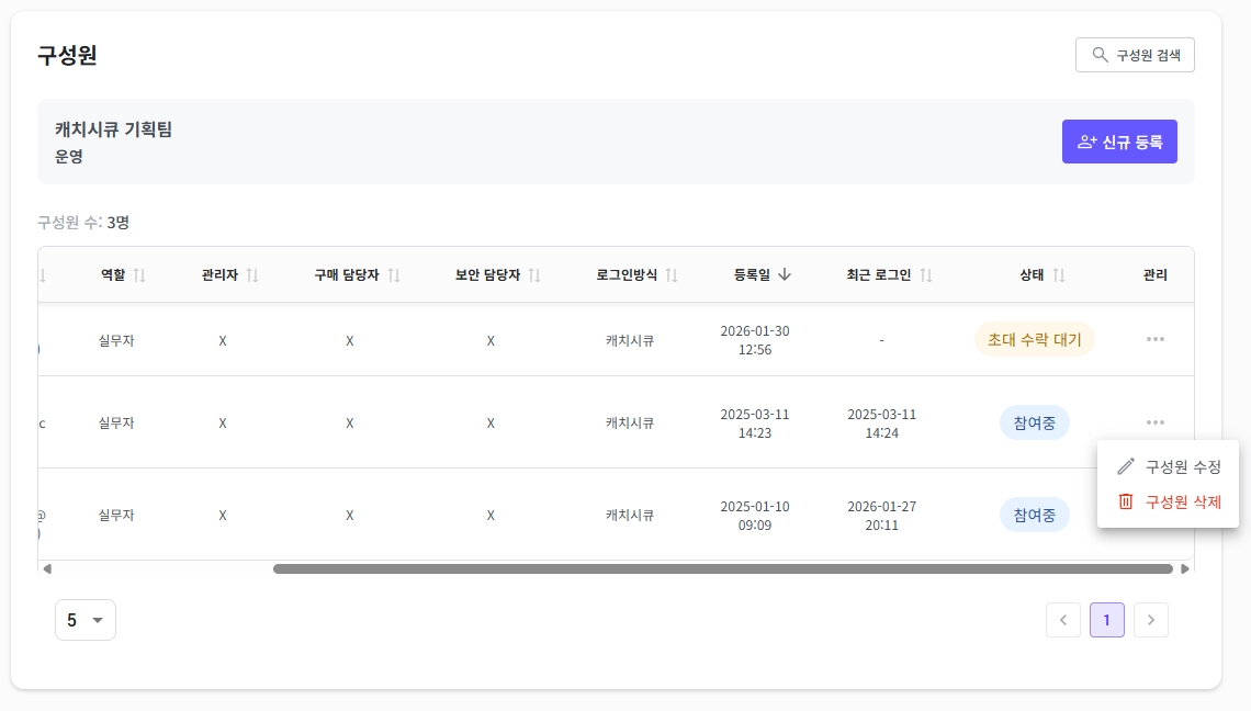 위치: 좌측 메뉴 > 관리 > 구성원 관리