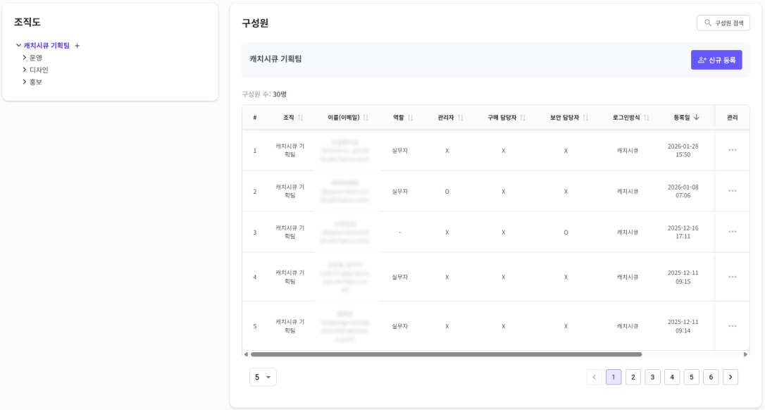 캐치시큐 서비스를 이용할 사내 구성원을 등록합니다.