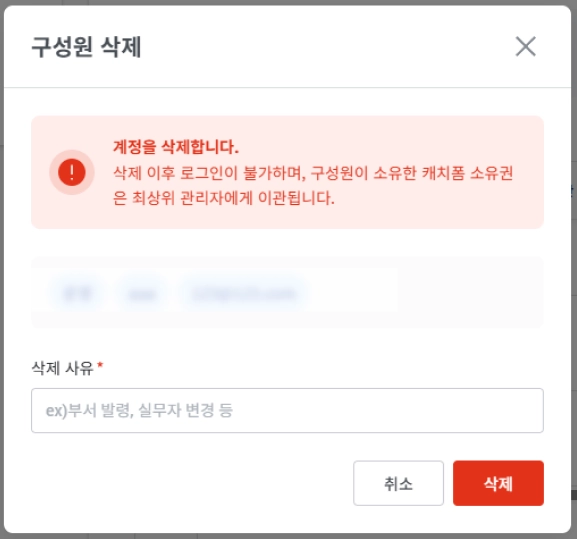퇴사 등의 사유로 더 이상 캐치시큐를 사용하지 않는 구성원은 삭제가 가능합니다.