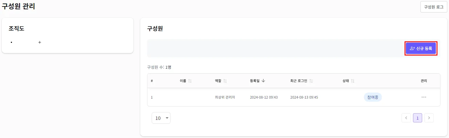 우측 상단에 ‘신규 등록’ 버튼을 클릭해 주세요.