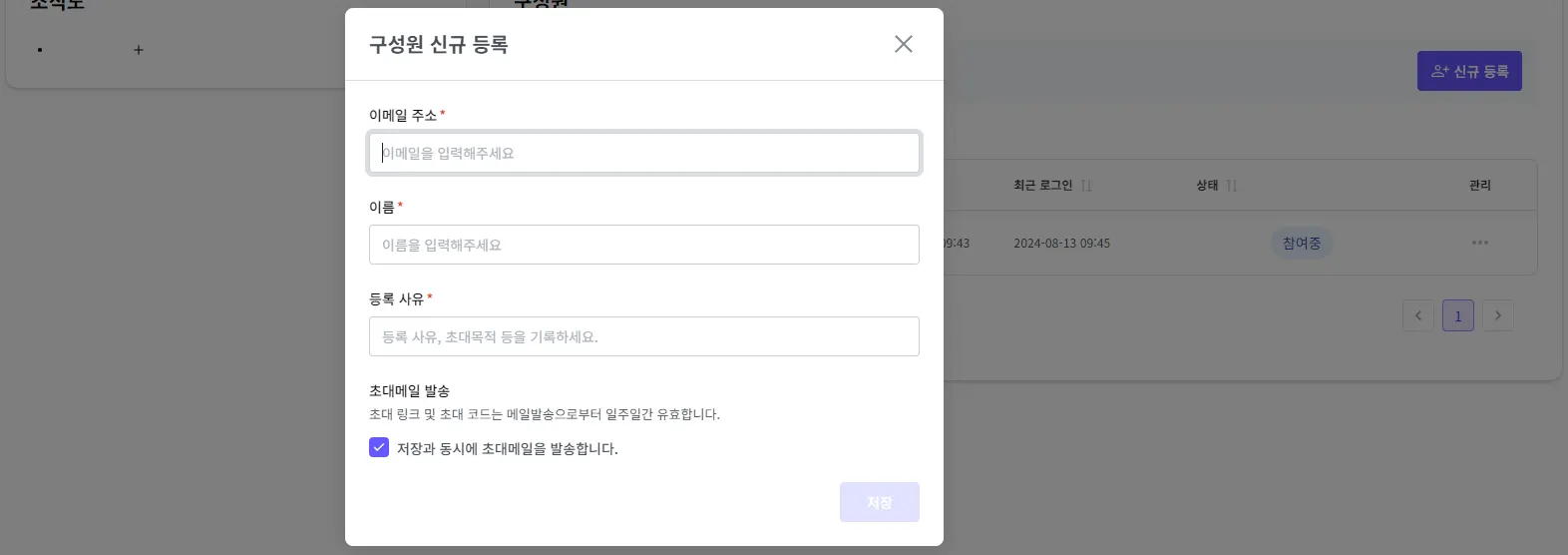 캐치시큐 대시보드에 관리 > 구성원 관리를 클릭해 주세요.