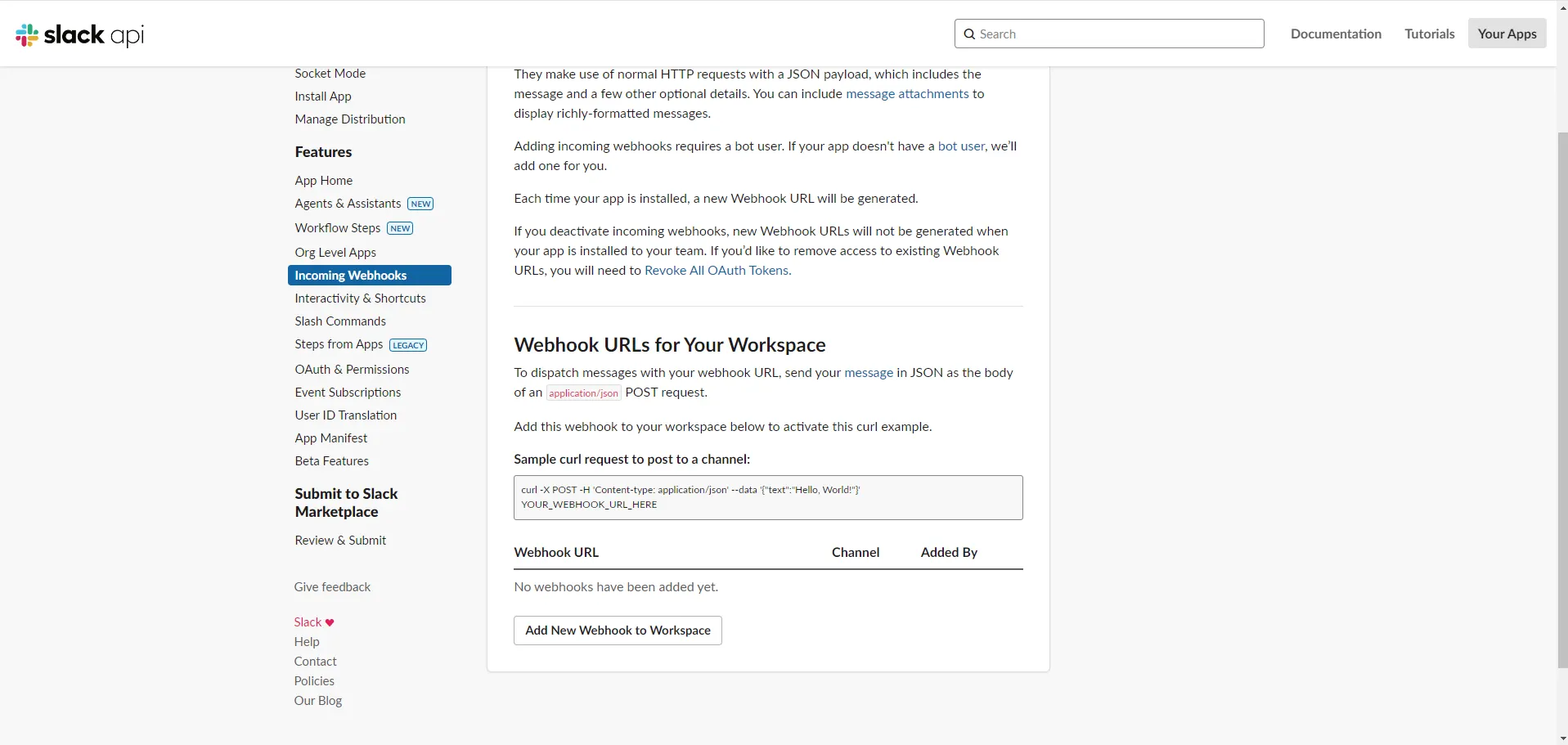하단에 활성화된 ‘Add New Webhook to Workspace' 버튼을 클릭합니다.