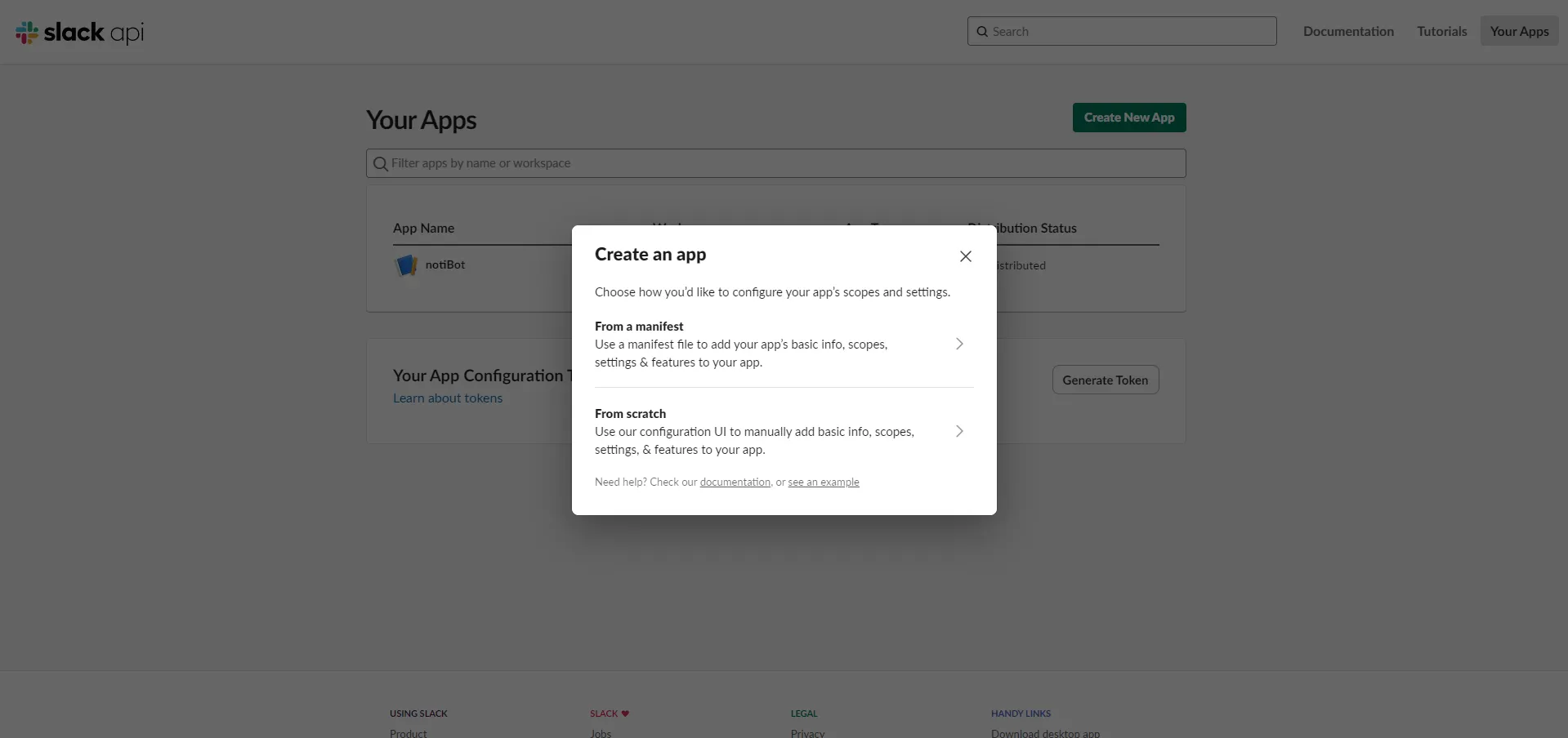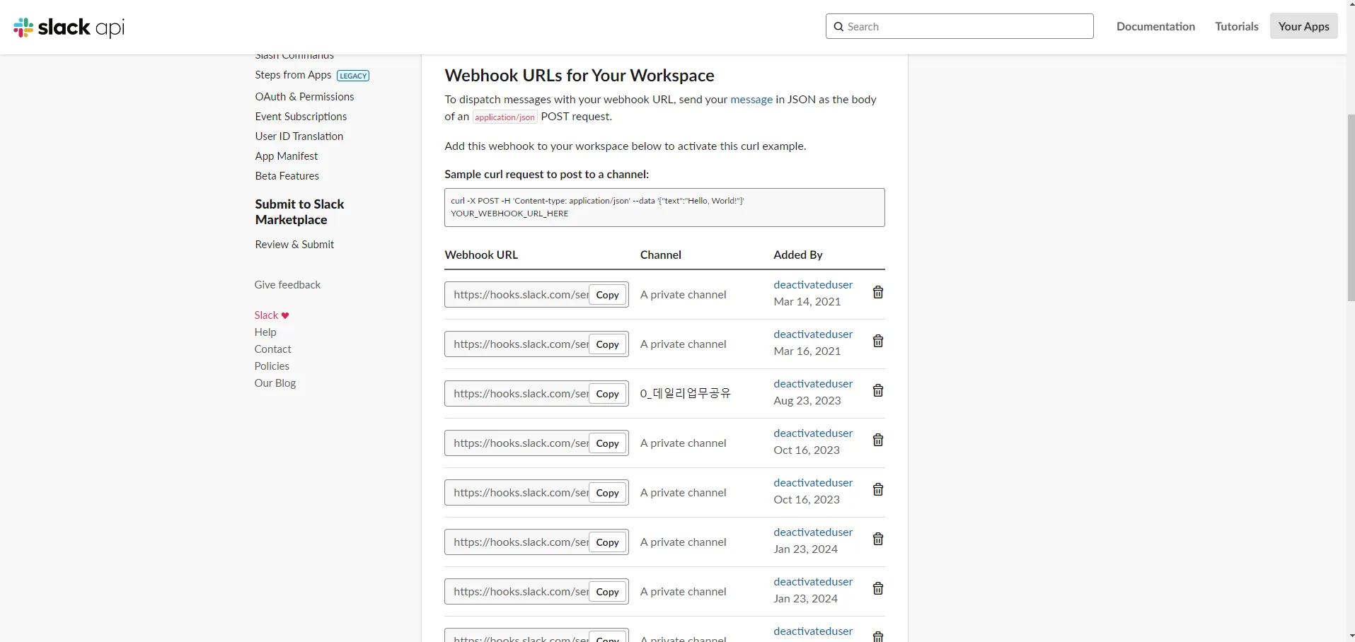 Create new App을 클릭해서 새로운 웹훅 APP을 생성합니다.