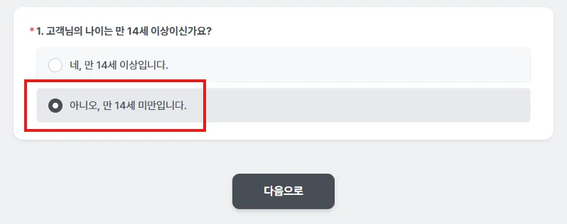연령제한 문항 등을 통한 제한된 인원의 답변만 수집하기