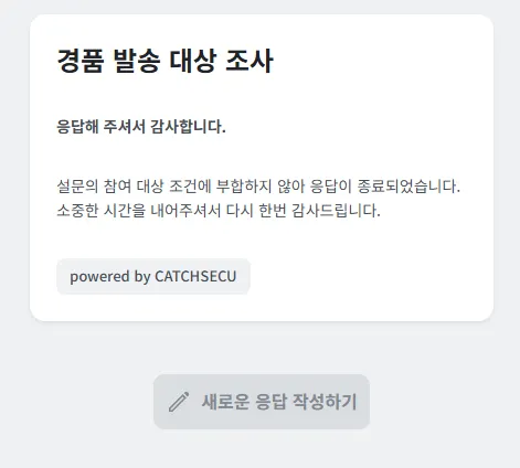 ‘새로운 응답 작성하기’ 버튼을 클릭하면, 캐치폼의 첫 화면으로 이동해서 다시 설문에 참여할 수 있습니다.