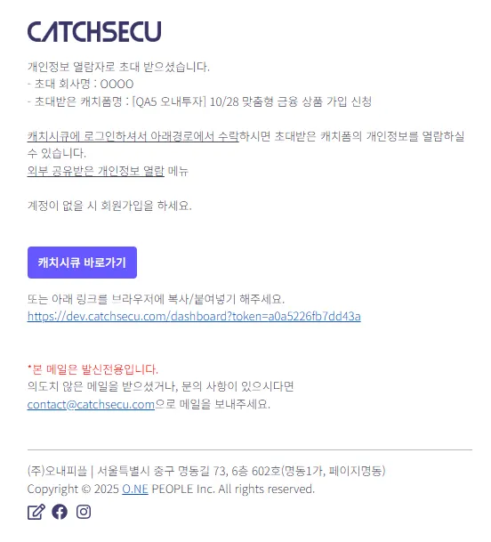 캐치시큐 개인정보 열람자로 초대 받으셨나요?