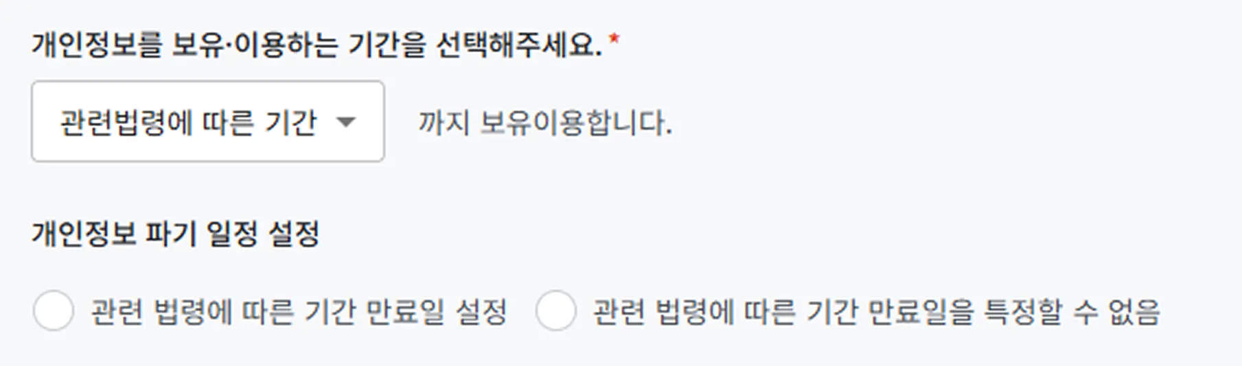 ① 파기일정 사후 지정 기능을 사용하지 않습니다. (기본값)