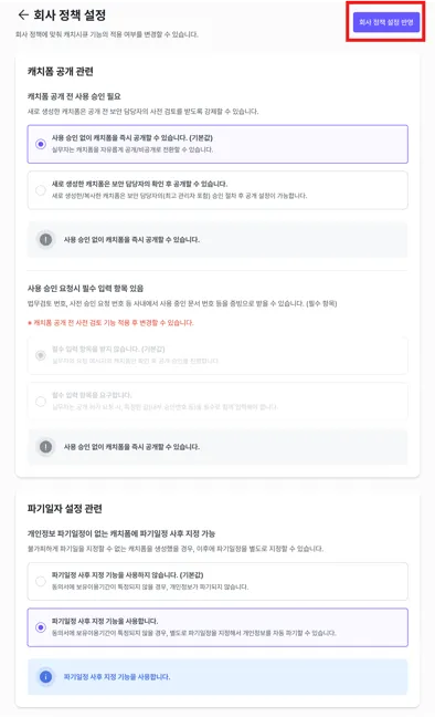 기능 사용을 위해서는 최상위 관리자가 먼저 회사 정책을 활성화해야 합니다.