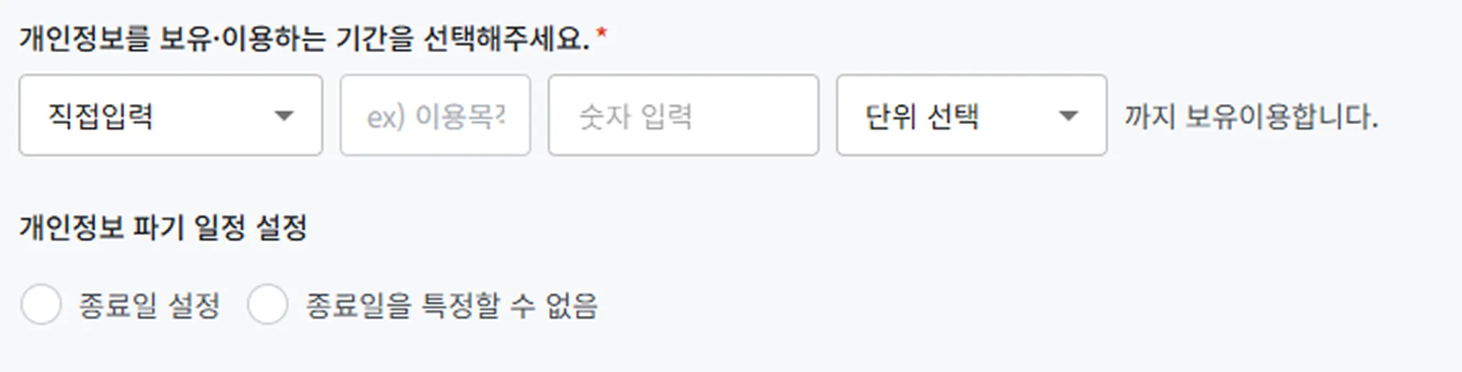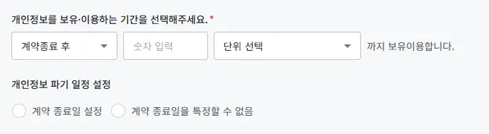 ② 계약 종료 후, 파기 일정을 특정 할 수 없음 설정 했을 경우