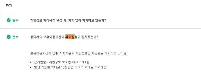 캐치폼별로 사후 파기일 지정 여부도 모니터링 할 수 있습니다.