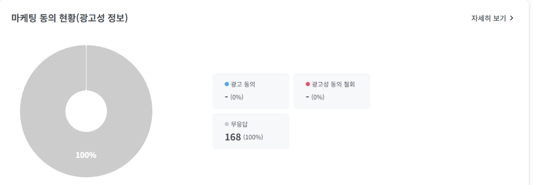 우측 상단의 [자세히 보기]를 클릭하시면, 현재 보관 중인 모든 데이터의 마케팅 동의 상태를 종합하여 차트로 확인할 수 있습니다.