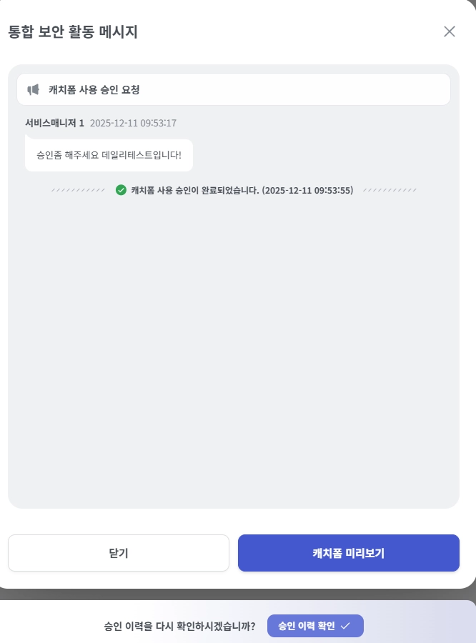 자세한 가이드는 관리자,실무자의 가이드에서 [캐치폼 승인 요청 및 승인 가이드 ]를 참고 부탁드립니다.