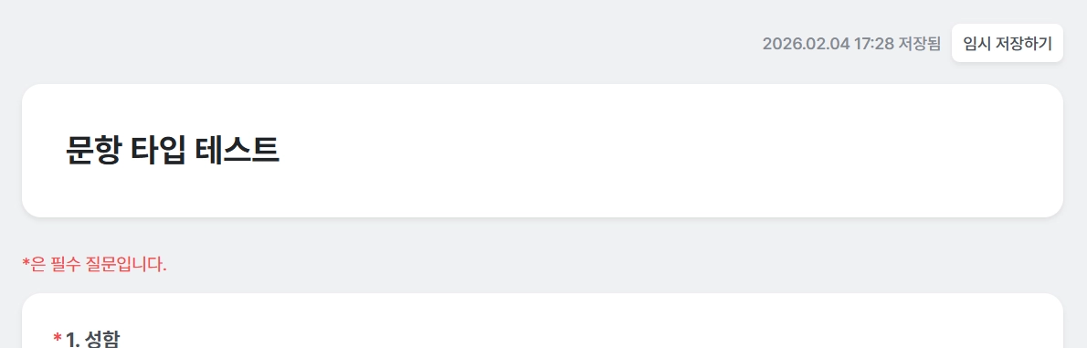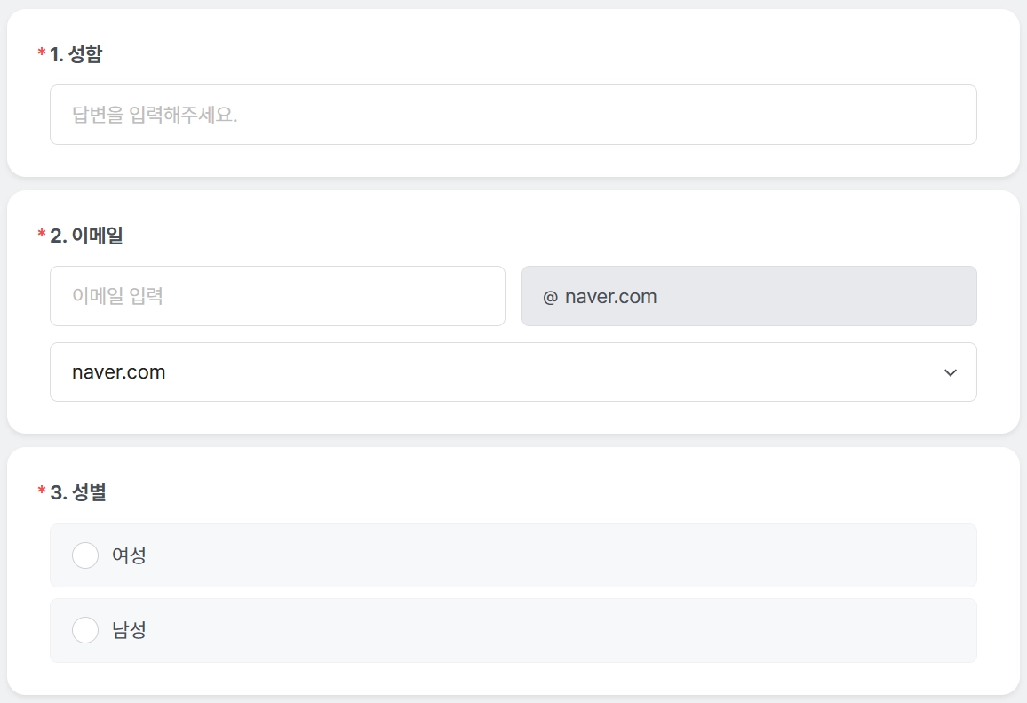각 문항 타입에 맞게 정보를 수집하며, 개인정보일 경우 안전하게 암호화 하여 수집하고 있습니다.