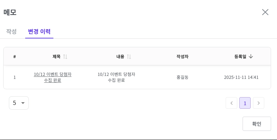 메모의 변경 이력을 통해 수정된 내용, 작성자, 그리고 등록일을 모두 상세히 확인할 수 있습니다.