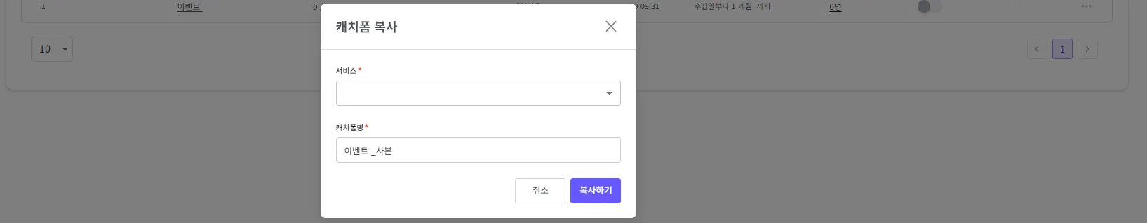 캐치폼을 복사할 서비스를 선택해 주세요.