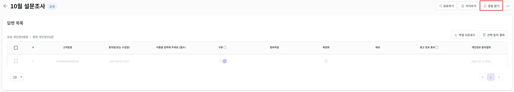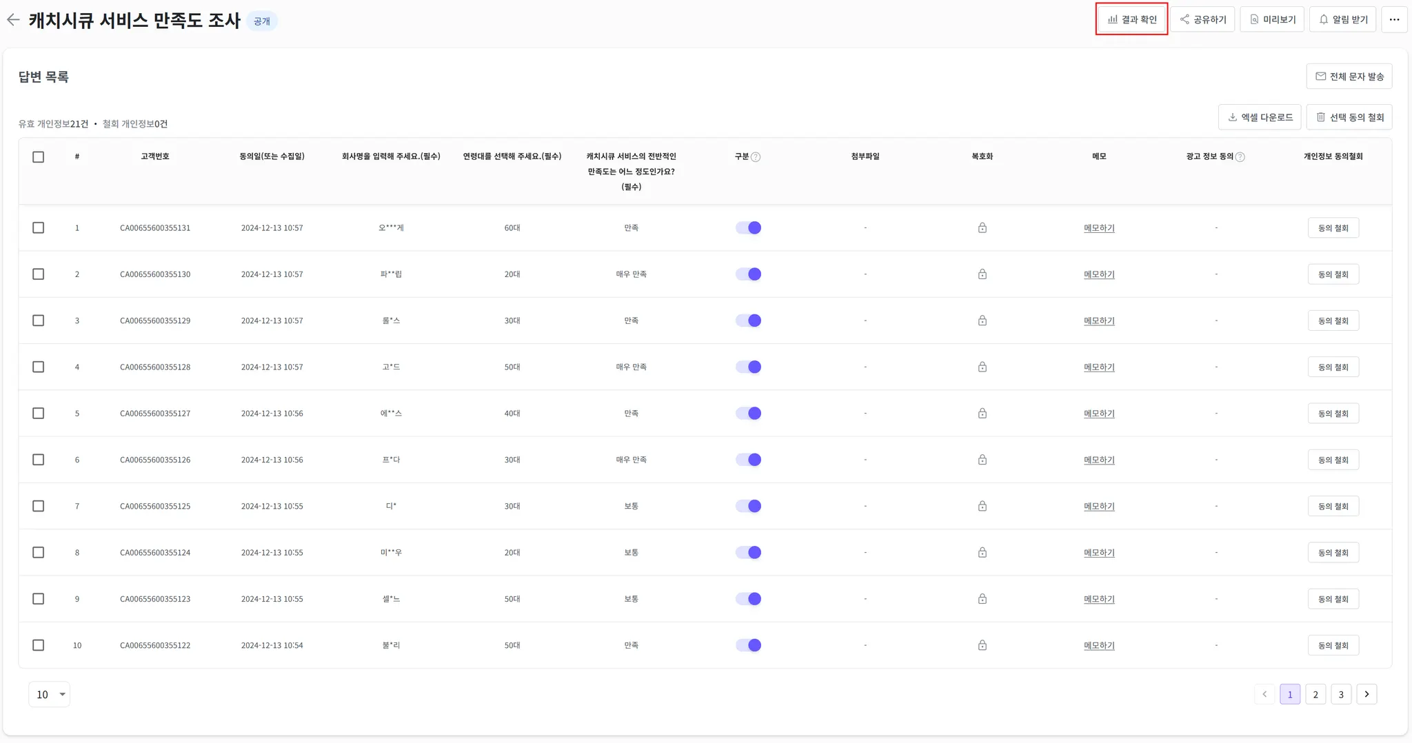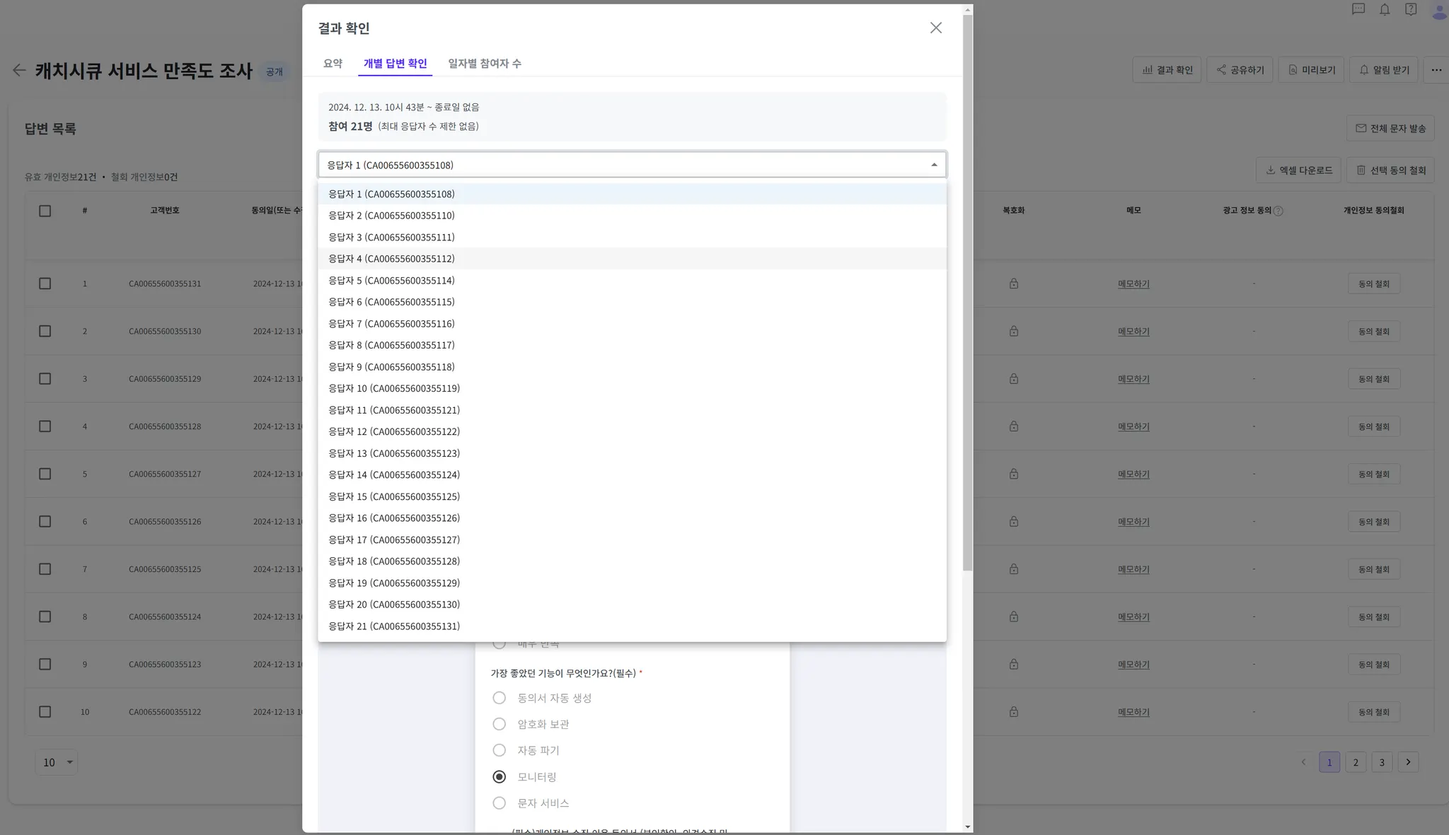 응답자별로 답변을 확인할 수 있습니다.