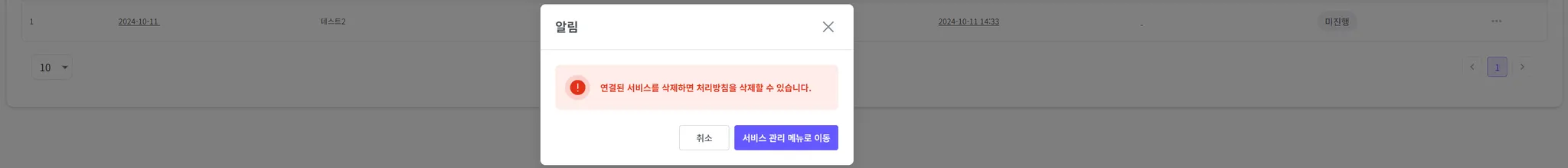 연결된 서비스를 삭제하면 처리방침 삭제가 가능합니다.