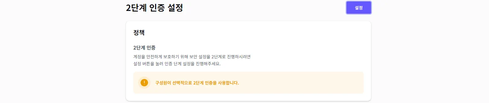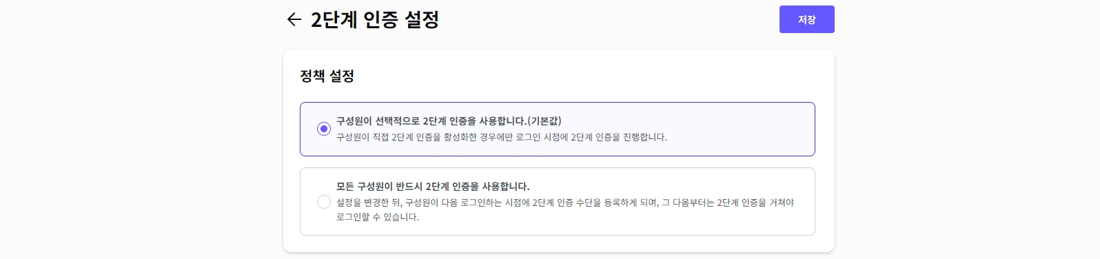 전체 구성원이 2단계 인증을 하도록 설정할 수 있습니다