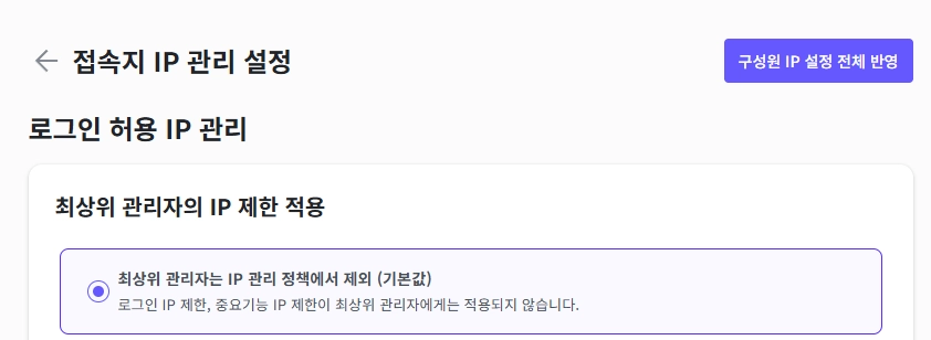 최상위 관리자의 IP 제한 적용 여부를 선택해주세요.