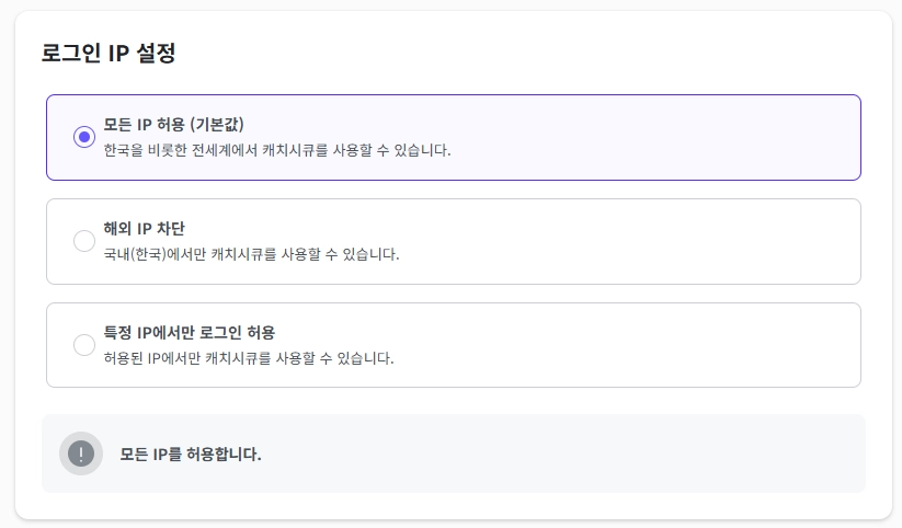 캐치시큐에 로그인할 수 있는 IP를 제한합니다.