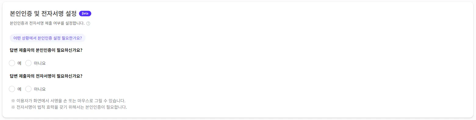 본인인증과 전자서명 여부를 선택해 주세요.