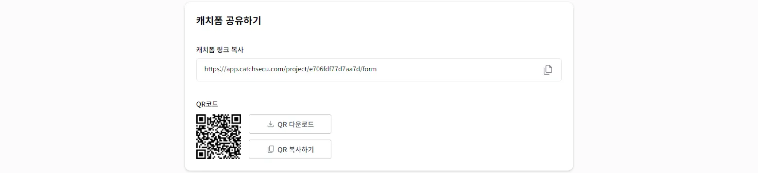 링크, QR코드를 통해 캐치폼을 외부에 공개할 수 있습니다.