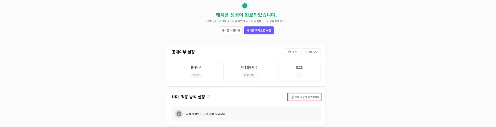 생성한 캐치폼의 URL을 변경할 수 있습니다.