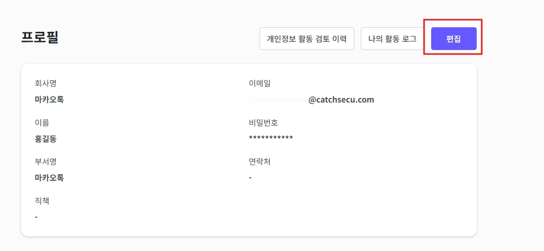 경로 : 캐치시큐 대시보드 > 우측 “MY” > 마이페이지 클릭해 주세요.