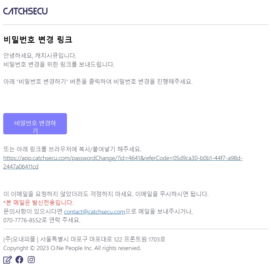 ‘[캐치시큐] 비밀번호 설정을 완료해 주세요.’라는 제목으로 온 이메일을 확인해 주세요.