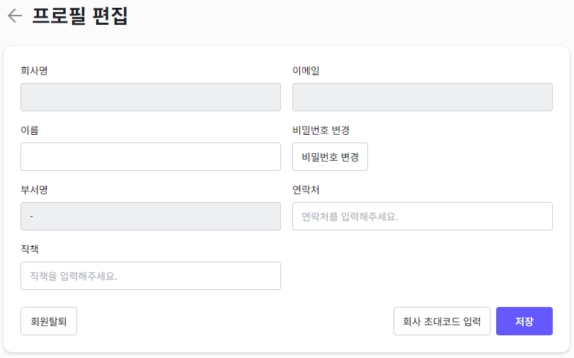 수정하고자 하는 회사 정보를 입력한 후 ‘저장’ 버튼을 클릭해 주세요.