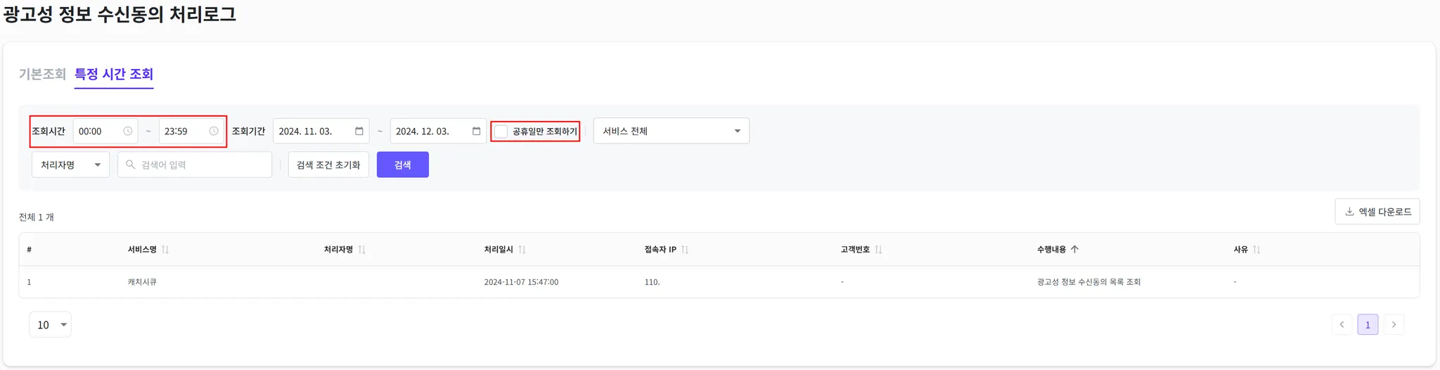 공휴일만 처리 로그를 조회할 수 있습니다.