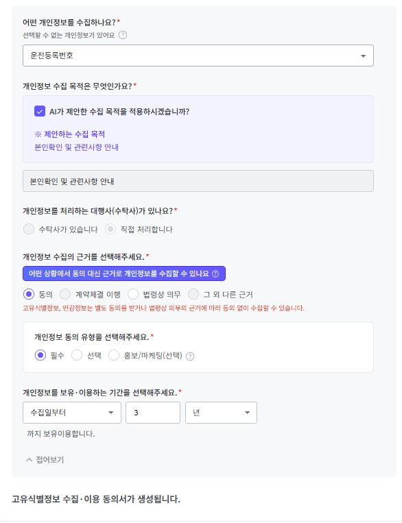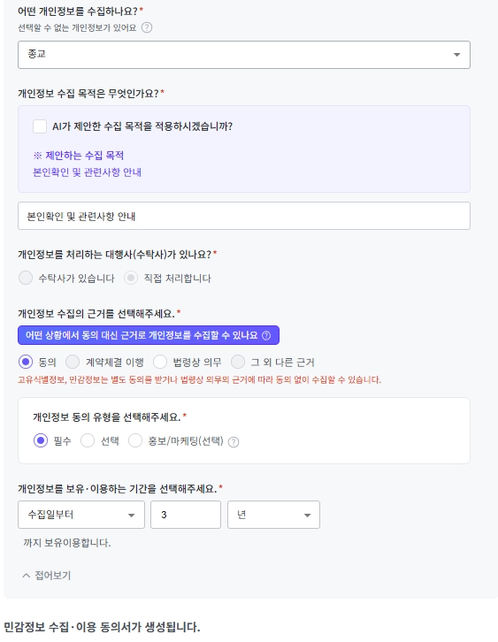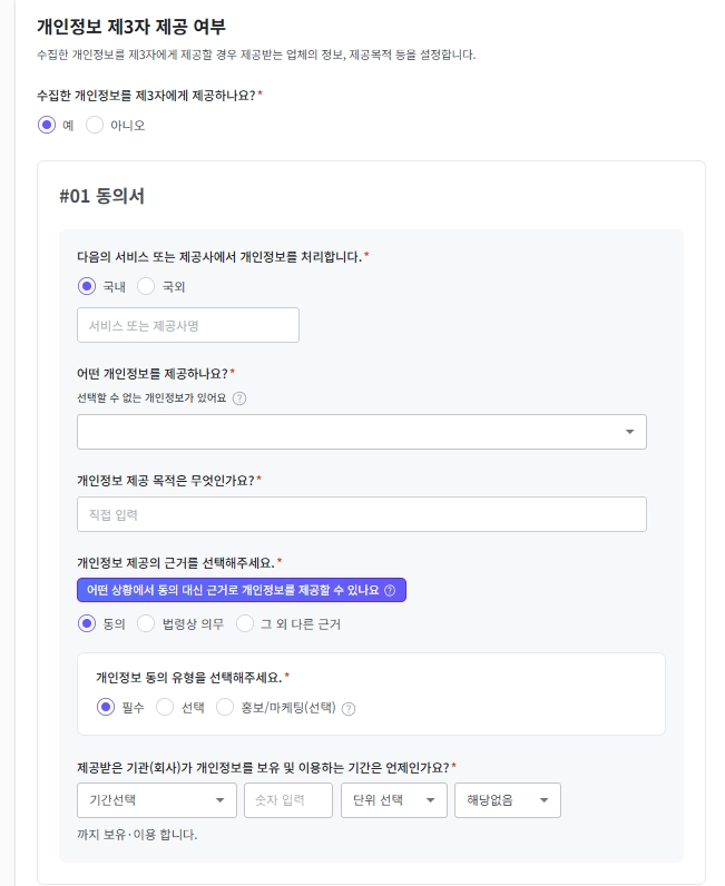 제3자 제공 동의가 필요하다면, 3단계 [제3자 제공 동의서] 생성해 보세요!