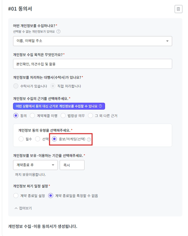 개인정보 수집 및 이용 동의서가 적법하게 준비되었습니다.