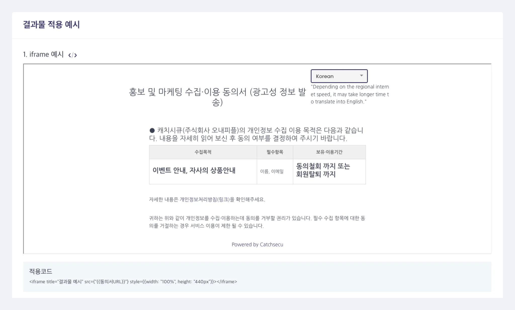 <iframe id="consent-iframe" title="결과물 예시" src= “결과물URL” style="width: 100%; height: 535px;"></iframe>