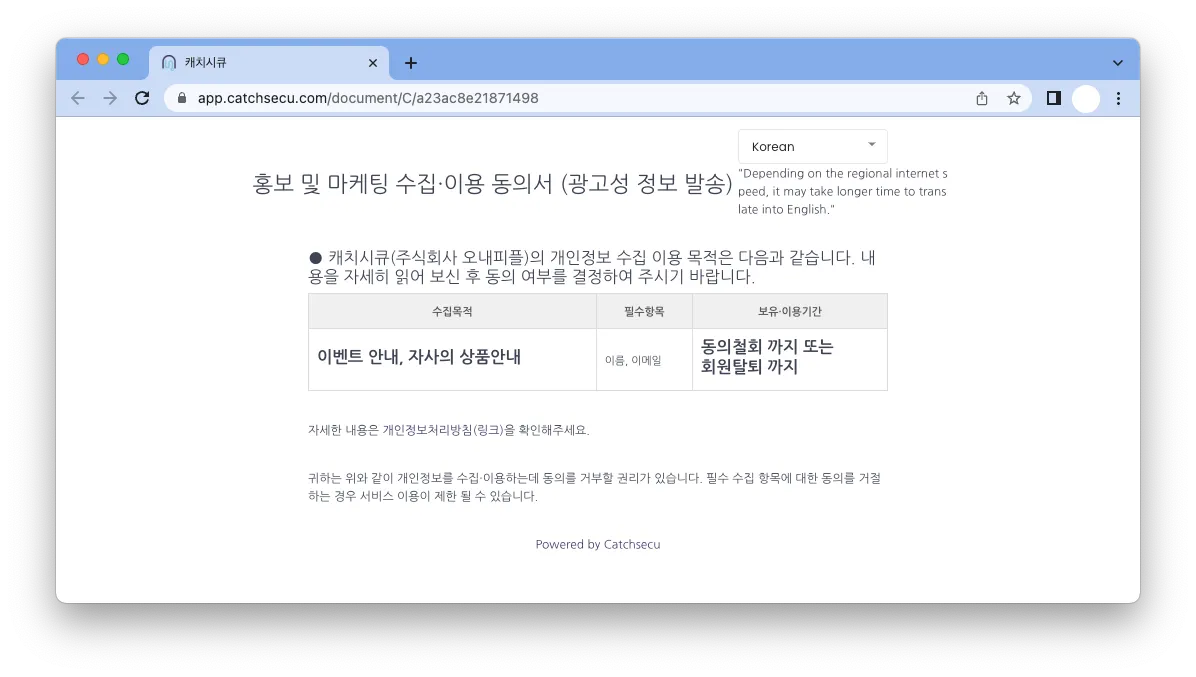 동의서 목록 > 동의서 제목 > 동의서 미리보기 팝업의 상단에 위치한 URL 복사 버튼 클릭